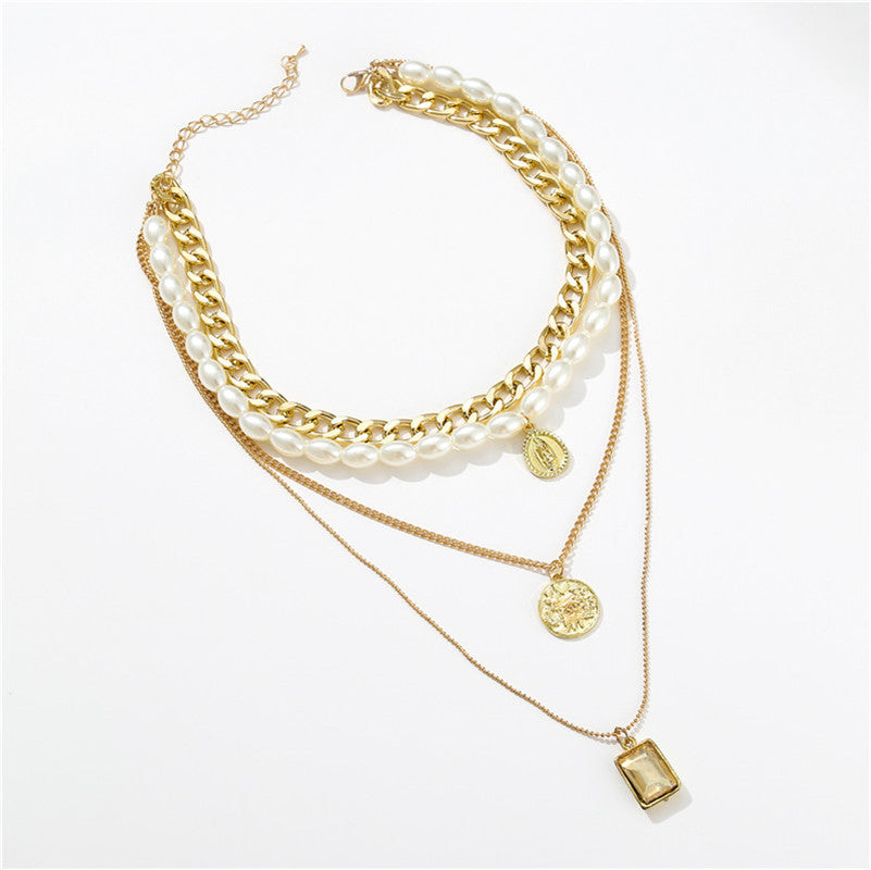 Pearl Necklace, Diamond Necklace, Retro Coin, Gemstone Necklace, Multi-layer Pearl